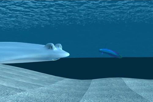 |   | Story - Into The DeepLooking through the periscope inside the submarine, the diver explores deep into the sea. He encounters a dead whale being eaten by huge hackfish (a sort of eel). Next is the surprising appearance of a gigantic nightmarish tree. The sub is attacked by one of the tree's faces, losing a fin/wing. As it escapes, the tree spins to fling a bunch of eels attacking the sub similar to the whale ealier. Then a giant Anomalocarus (an extinct arthropod) shows up and attacks the sub. Then ......