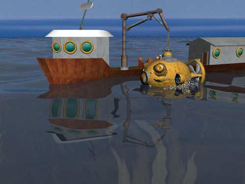 |   | Story - The Sub, The Fish and The Monster A submarine is deployed from its support ship to dive down into the deep sea in search of treasure. Without realizing that it is being followed by a large whale-like creature, the sub makes its way down to the sea floor. The treasure hunt is rewarded by discovering two diamonds in a large chest. However, the guarding angler fish is awaken and the trace begins. The sub is able to trap the fish and escapes back to the open sea. Unfortunately, the fish catches up and the trace begins again. Then ......